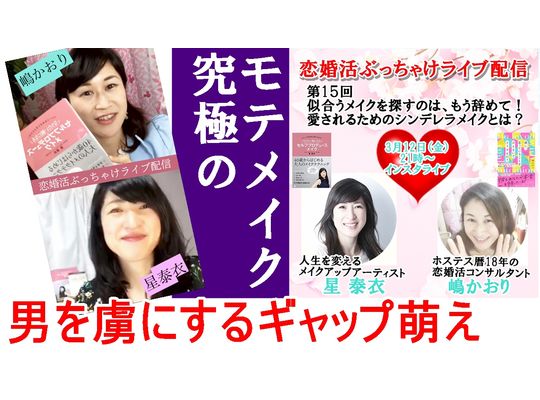 2021/03/31先日の恋婚活ぶっちゃけライブ配信 YouTubeにUPしました!↓こちらからご覧ください↓ https://youtu.be/XAxZRAST5UE 第15回似合うメイクは、もう辞めて! ... -