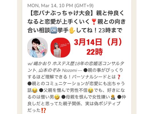 2022/03/10※clubhouseはリプライが聞けるようになりました。 私のプロフの一番下から 聞き逃したものを聞いてみてね♪ https://www.clubhouse.com/@shimakaori 3月14日... -